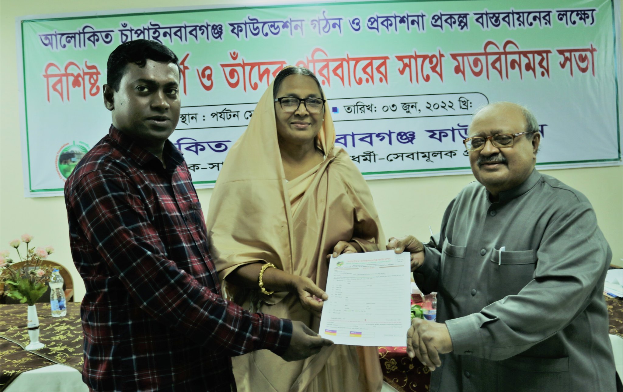 দুইবারের এমপি (সংরক্ষিত মহিলা আসন-৬, চাঁপাইনবাবগঞ্জ-রাজশাহী), বিশিষ্ট রাজনীতিক, শিক্ষক ও সাহিত্যিক- ‘লুৎফুন নেসা মুস্তারী’ এর সাথে আলোকিত চাঁপাইনবাবগঞ্জ ফাউন্ডেশনের প্রতিষ্ঠাতা ও নির্বাহী পরিচালক ‘মাহবুবুল ইসলাম ইমন’